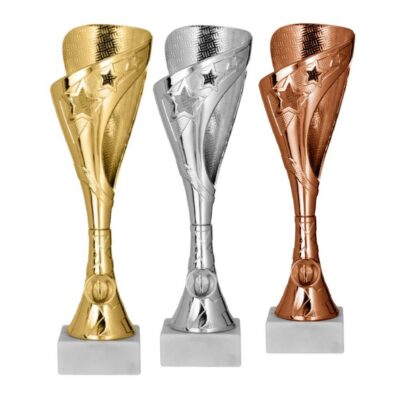 Karikas 9329 Eelmine Järgmine Karikas 9329 Metallkarikas, plastikjalg, kivialus, lisatava alamärgiga. Alamärk sisaldub karika hinnas. Graveeringuga silt alusele. Graveeringu hind vastavalt sildi suurusele. Vali suurus -- h 335mm/kuld (10,00€) h 315mm/hõbe (9,00€) h 290mm/pronks (8,00€) Sarnased tooted Karikas 9257 Karikas 94141 Karikas 4233 Karikas 4234